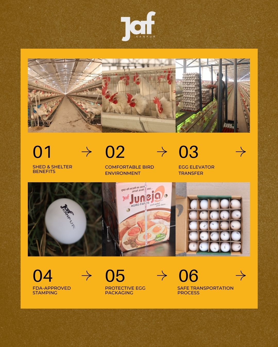 We follow strict quality control measures, collecting eggs daily, and packing them in a hygienic, temperature-controlled environment to maintain farm-fresh quality from our farm to your home.